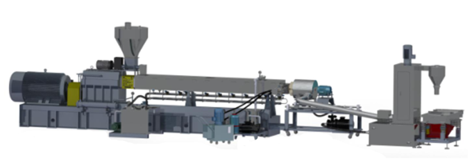 該系統(tǒng)通常包括模頭,切粒小車(chē),旋風(fēng)分離、振動(dòng)輸送等。